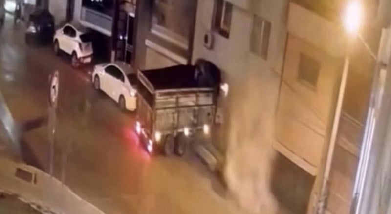 İzmir'in Bayraklı ilçesine bağlı Çiçek Mahallesi'nde İ.Y. idaresindeki kamyon, freninin boşalması sonucu kontrolden çıkarak sokağın sonundaki apartmanın giriş katındaki daireye çarptı.