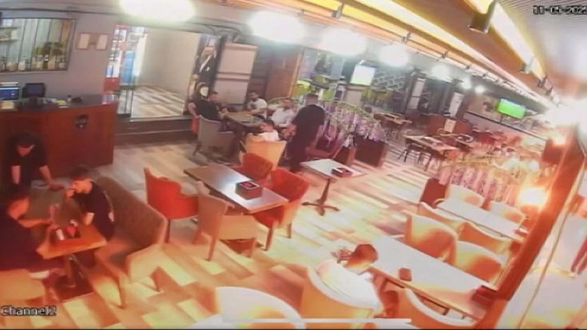 Görüntülerde, iş yerinin camlarının kırıldığı ve çevredekilerin panikle kaçıştığı görüldü.