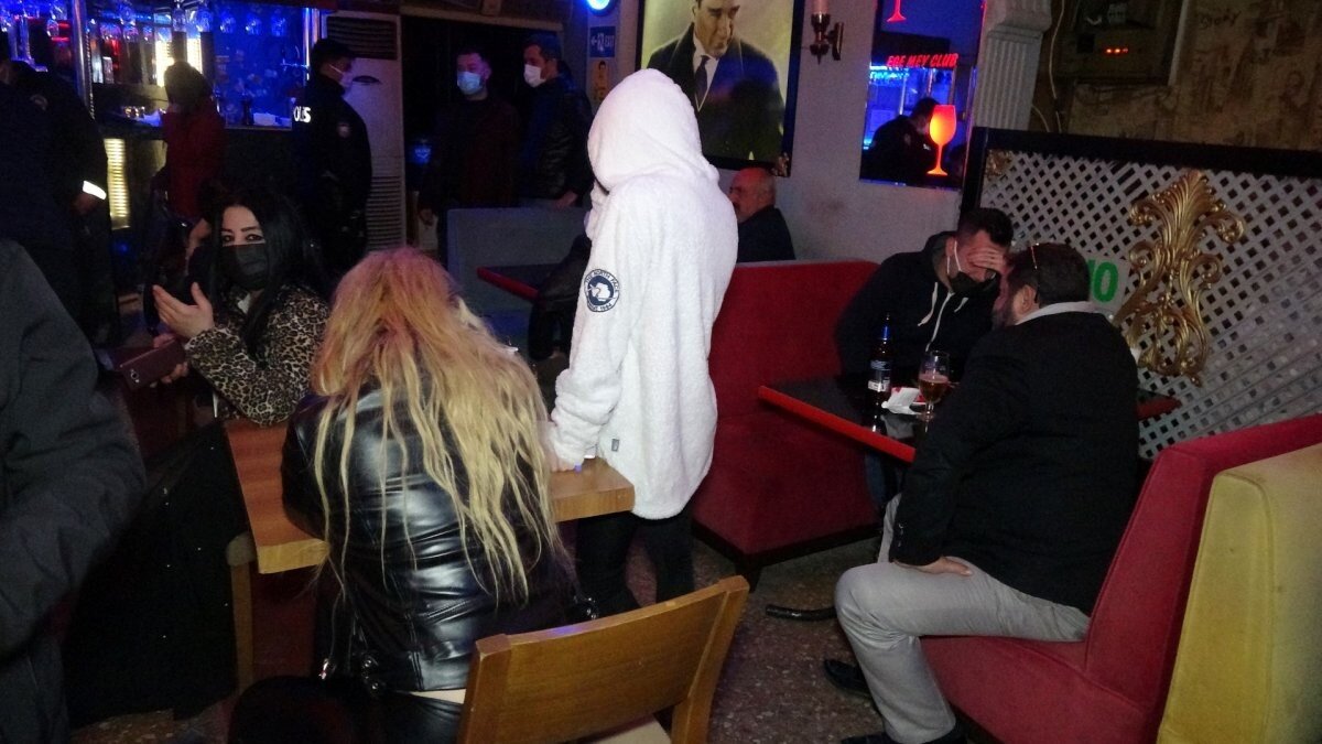 Mekana baskın yapan polis, kapalı olması gereken iş yerinin faaliyetine devam ettiğini, içeride bulunan 23 kişinin sosyal mesafe kuralına uymayıp, sokağa çıkma kısıtlamasını ihlal edildiğini belirledi.