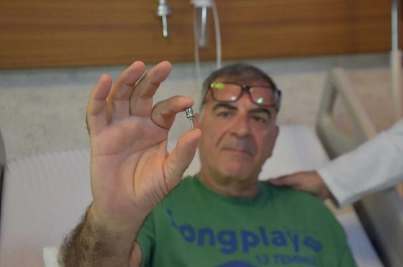 Öksürük şikayetiyle hastaneye giden emekli Çetin Urcan’ın akciğerine 15 gün önce takılan diş implantının kaçtığı belirlendi. 2 santimetrelik implant kapalı yöntemle çıkarıldı.