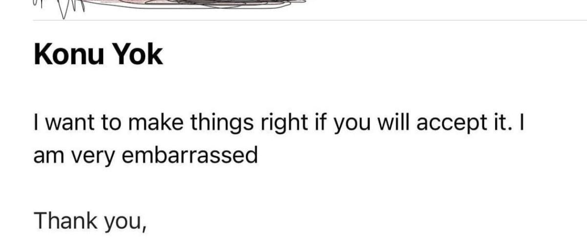 Tatiline Yunanistan'ın Santorini Adası'nda devam ettiğini söyleyen turist, İngilizce olarak "Eğer kabul edersen işleri düzeltmek istiyorum. Çok utanıyorum. Teşekkür ederim" yazılı mail attı.