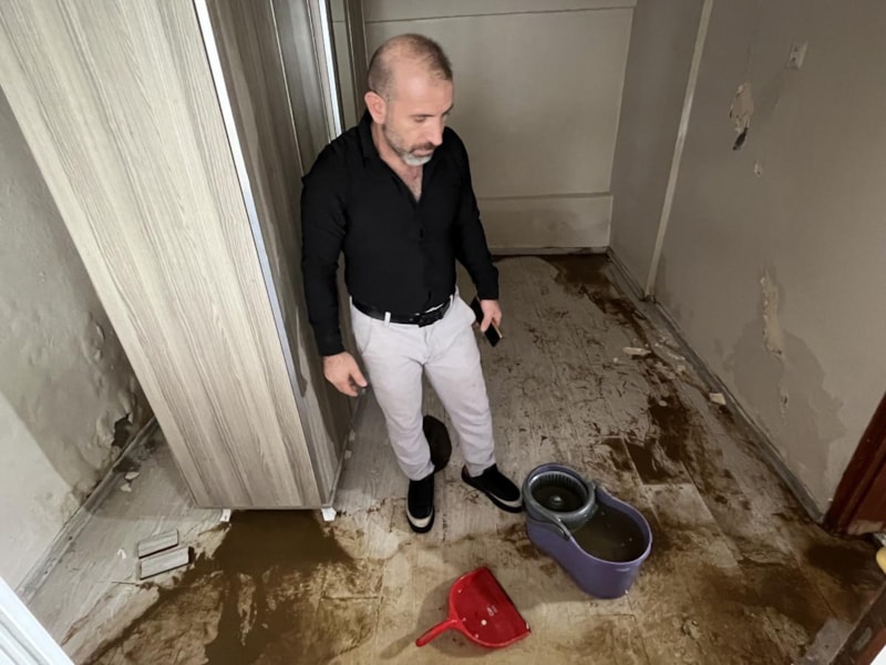 Evlerinin artık yaşanmaz hale geldiklerini söyleyen Bülent Taşkıran, "Dört haftadır evimiz bu şekilde ve içinde oturulamayacak durumda. Şebeke suyundan sızıntı var. Evimizin içine laminat parkeler, duvarlar ve bütün odalara sızdı. Mutfak dolapları zarar gördü.