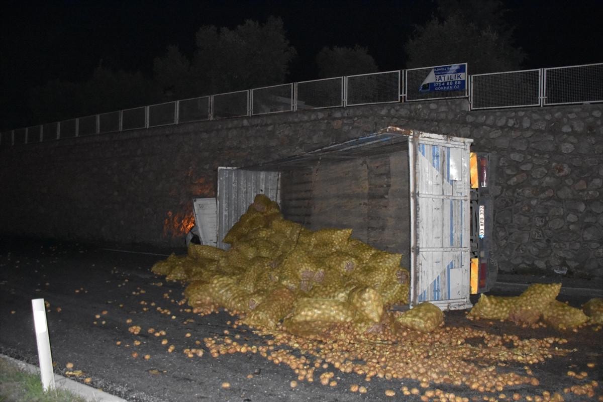 Sürücüsü henüz belirlenemeyen 03 AFU 332 plakalı patates yüklü kamyon, Kemalpaşa-Torbalı kara yolu Nazarköy kavşağında, kırmızı ışıkta bekleyen 3 otomobil, 1 kamyon, 1 hafif ticari araç ve 1 minibüse çarptı. Kamyon daha sonra devrildi.