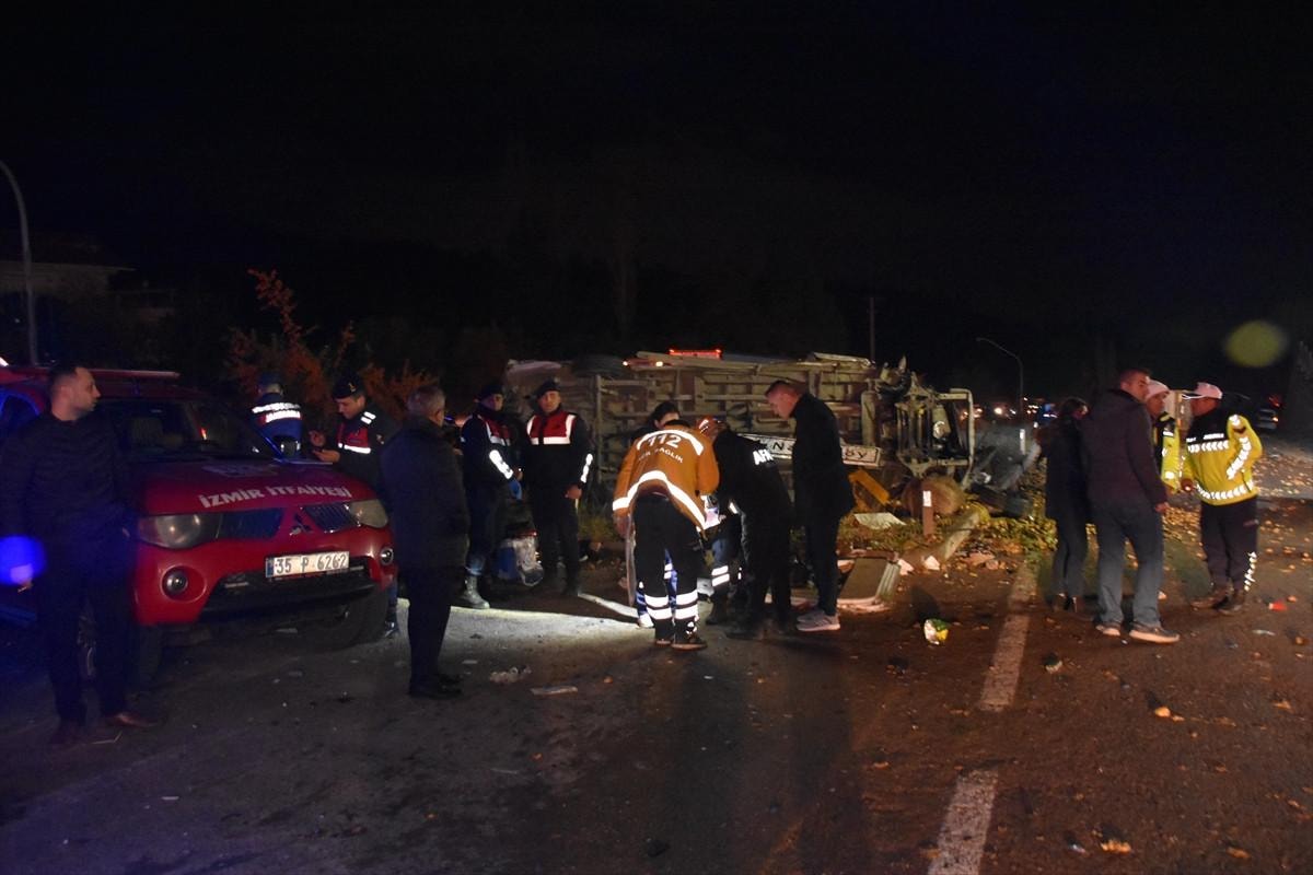 Kaza nedeniyle Kemalpaşa-Torbalı kara yolu bir süre ulaşıma kapanırken, uzun araç kuyrukları oluştu.
