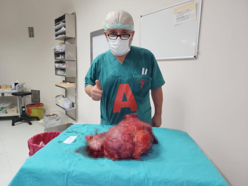 Dev tümör, Genel Cerrahi Uzmanı Prof. Dr. Osman Nuri Dilek ve ekiplerinin birlikte girdiği operasyonla başarılı şekilde çıkartıldı.