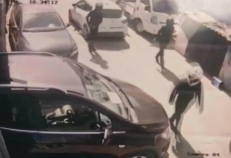 Görüntülerde, şüphelilerin beyaz bir otomobille kafalarında kaskla indikleri ve soygun yaptıktan sonra yine aynı arabayla kafalarında kasklarla kaçtıkları görülüyor.