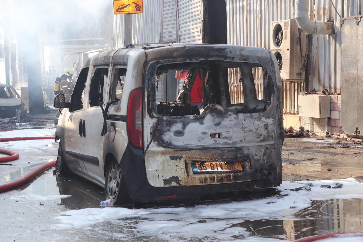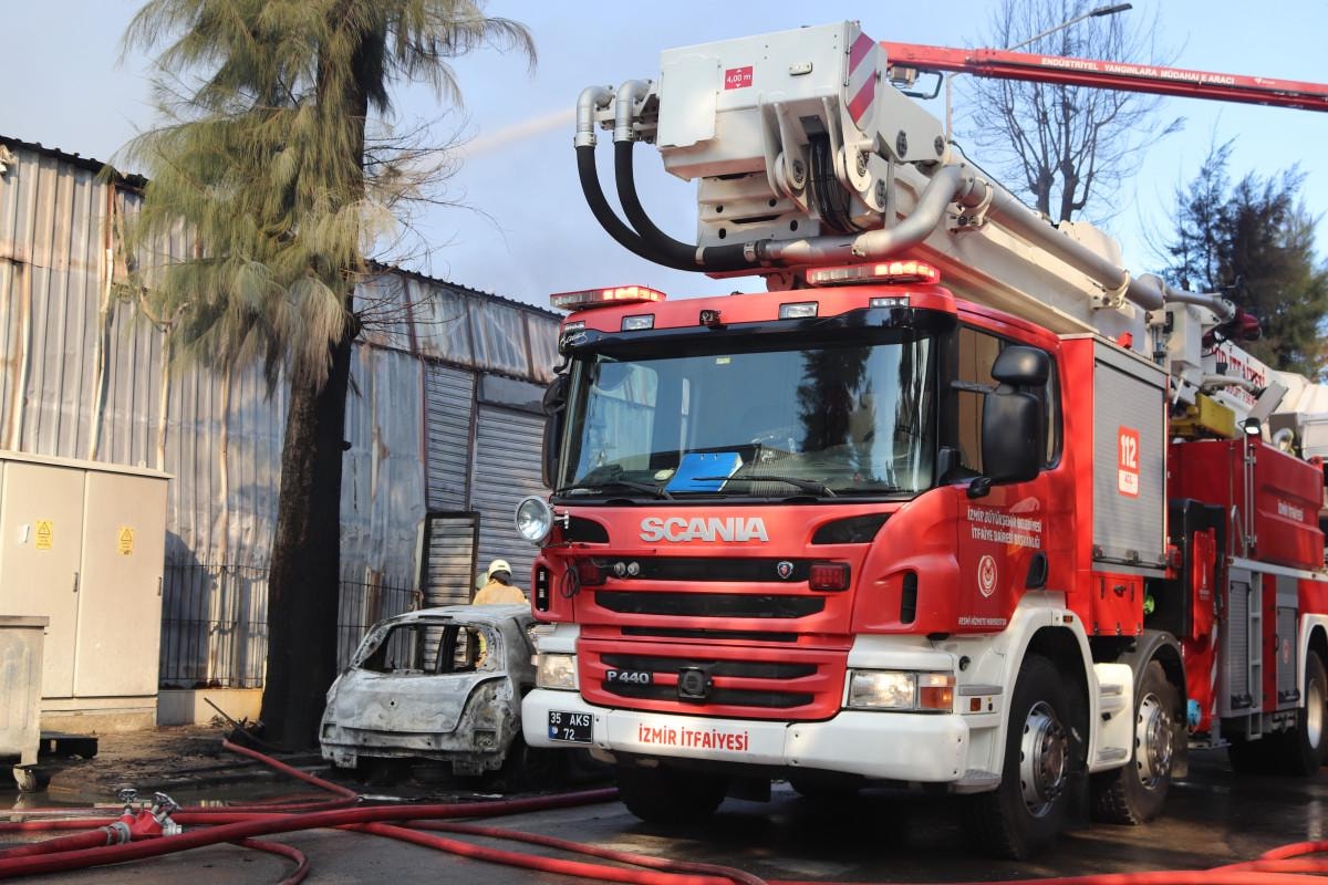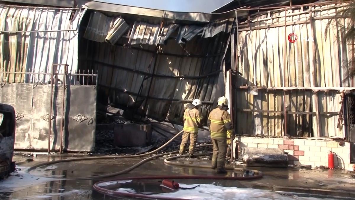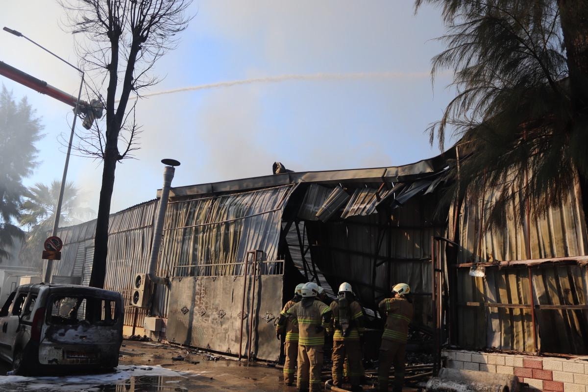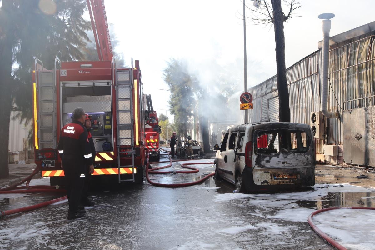 Yangında iş yeri yakınında bulunan 2 aracın da hasar gördüğü öğrenilirken, itfaiye ekiplerinin alevleri kontrol altına alma çalışmaları devam ediyor.