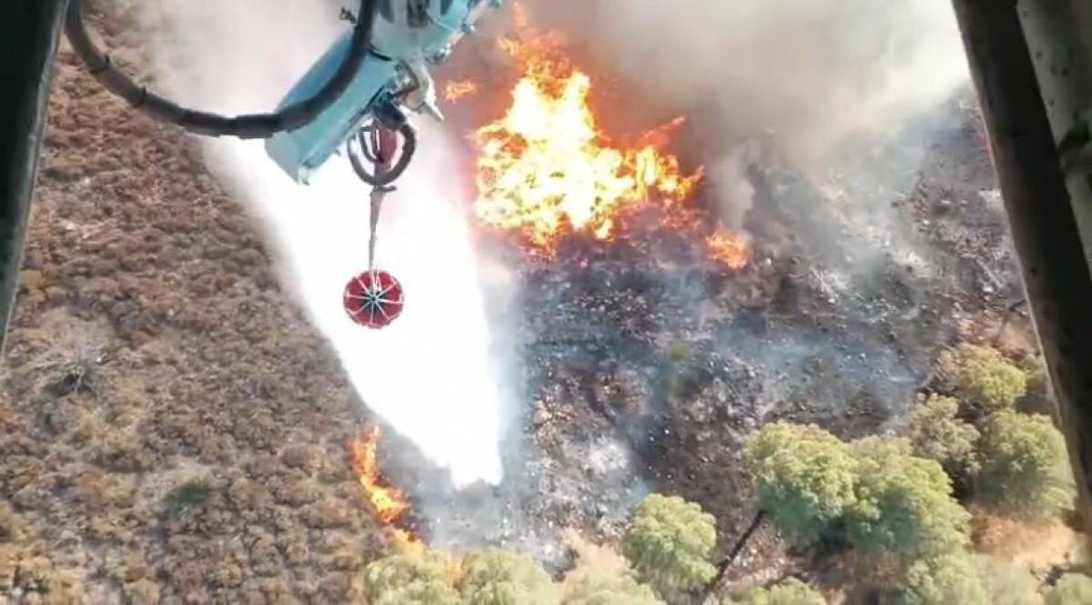 İhbarın ardından bölgeye İzmir Orman Bölge Müdürlüğü'ne bağlı 6 yangın söndürme uçağı, 3 helikopter, 13 arazöz, 2 su ikmal aracı ve 2 dozer sevk edildi.