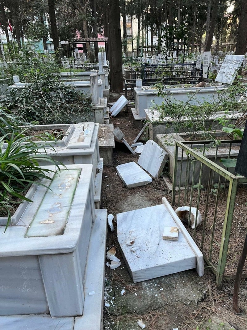 İzmir’deki Büyükçiğli Mezarlığı’nda kimliği belirsiz kişilerce gerçekleştirilen saldırıda, 39 mezar tahrip edildi. Saldırganların, şehit mezarına dahi zarar verdiği belirlendi.