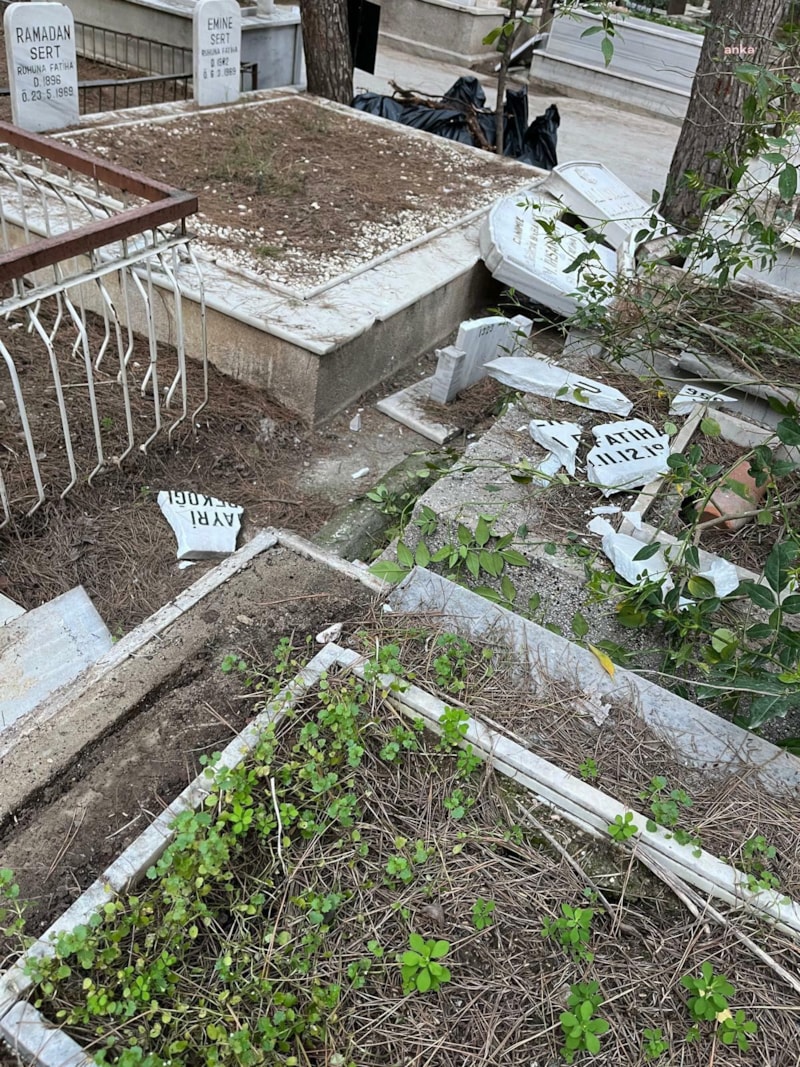 İzmir'in Çiğli ilçesinde kimliği belirsiz kişi veya kişiler, gece saatlerinde Büyükçiğli Mezarlığı'na girdi.