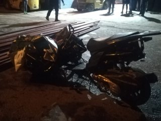 Motosikletin üzerine demir profiller devrildi VİDEO