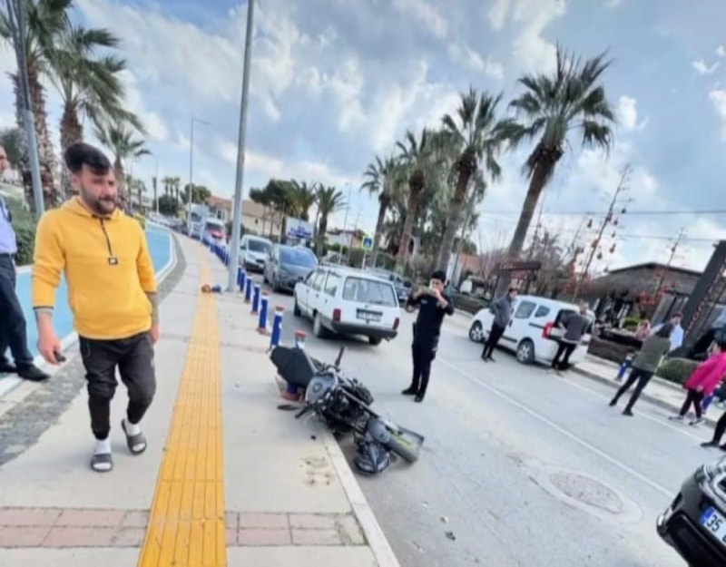 Motosiklet sürücüsüne çarptı