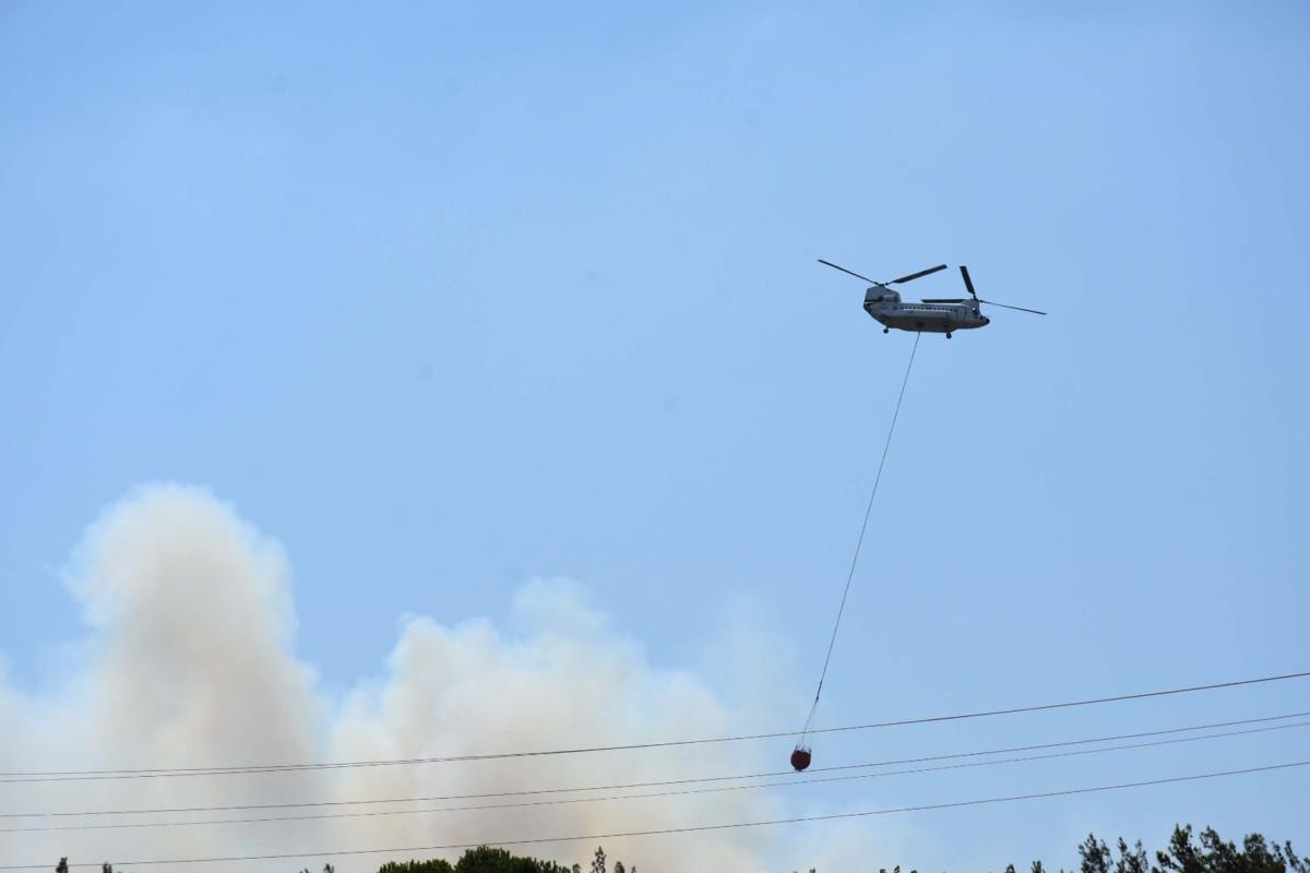 Yükselen dumanları fark eden mahallelinin ihbarı üzerine bölgeye İzmir Orman Bölge Müdürlüğü'ne ait 5 uçak, 9 helikopter, 25 arazöz, 7 su ikmal aracı, 3 dozer ve 3 yer ekibi sevk edildi. Ekipler, alevlere müdahale etti.
