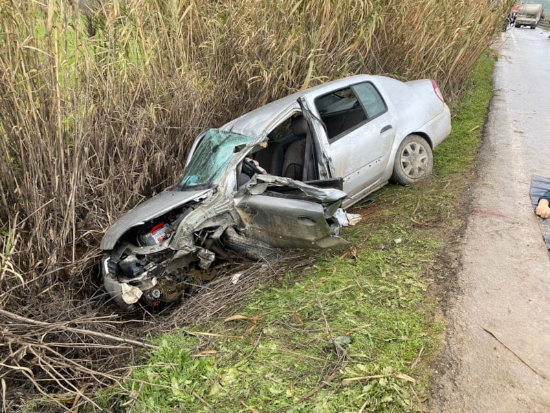 İzmir'in Tire ilçesinde Mehmet T. idaresindeki otomobil, karşı yönden gelen Kenan Ş. idaresindeki kamyonla çarpışarak kazanın şiddetiyle kanala düştü.