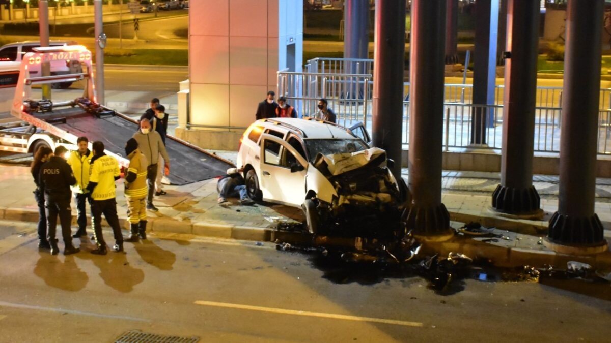 Sürücüsünün direksiyon hakimiyetini kaybettiği otomobil, üst geçidin ayağına çarptı.