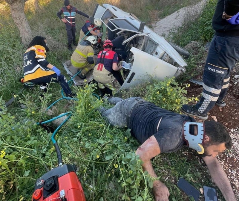 Otomobilin şarampole devrildiği kazada, araçta sıkışan sürücü Y.Ö. ve H.F.Y. ekiplerce sıkıştığı yerden kurtarıldı.