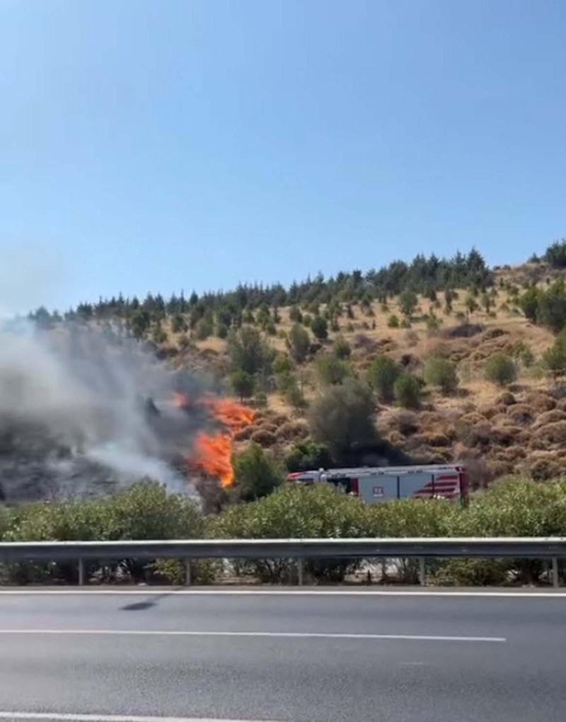 İzmir- Çeşme Otoyolu'nda bir otomobilde çıkan yangın, makilik alana sıçradı. Bölgeye sevk edilen ekipler, yangına müdahale ediyor.