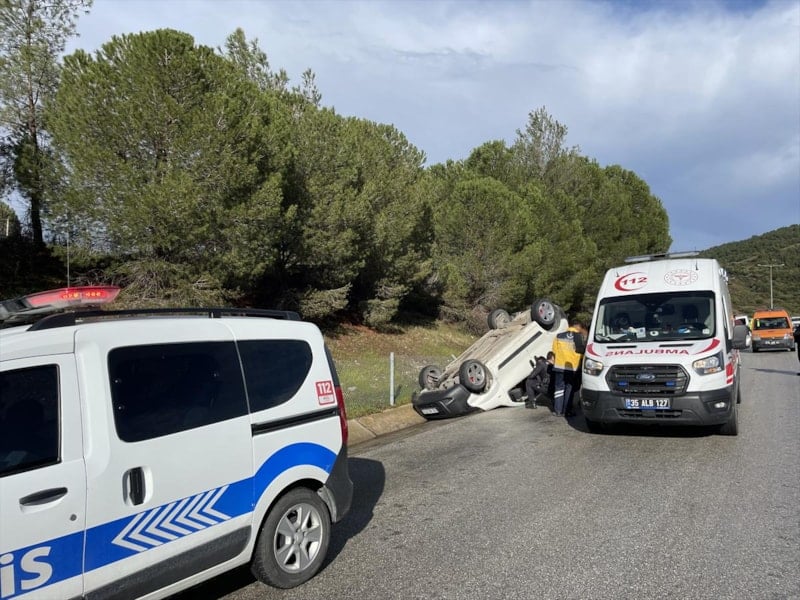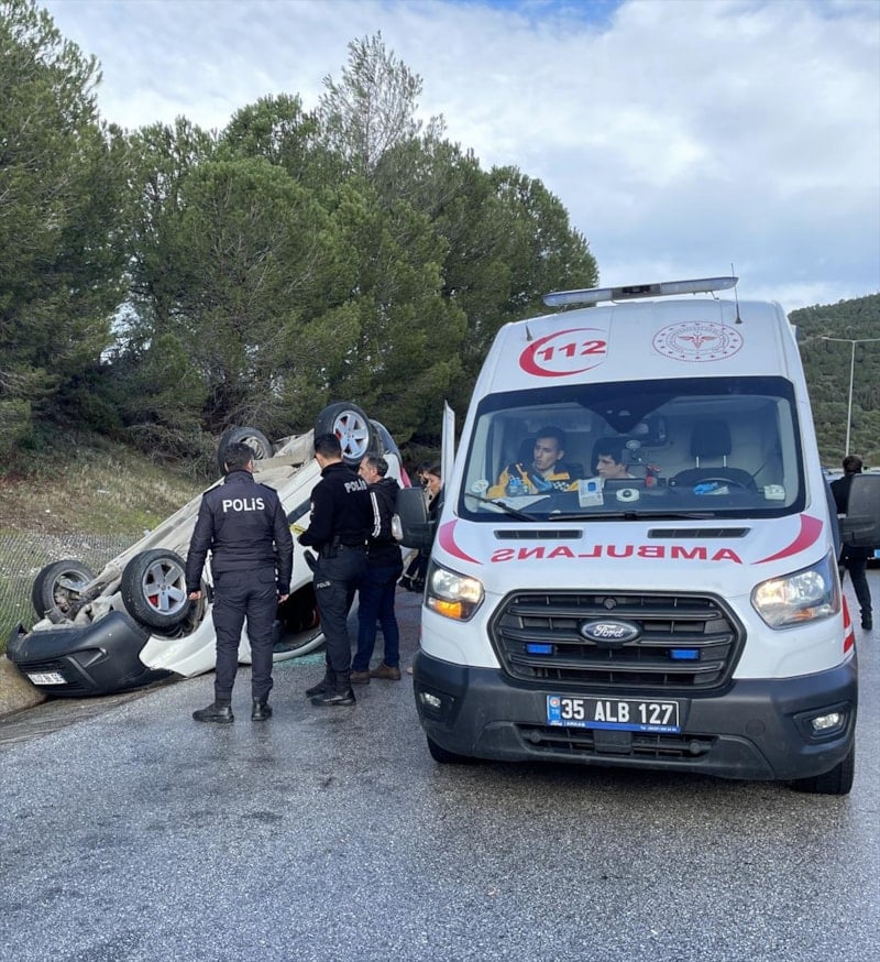 Kovalamaca sırasında, İzmir - Çeşme Otoyolunda kontrolden çıkan araç takla attı.