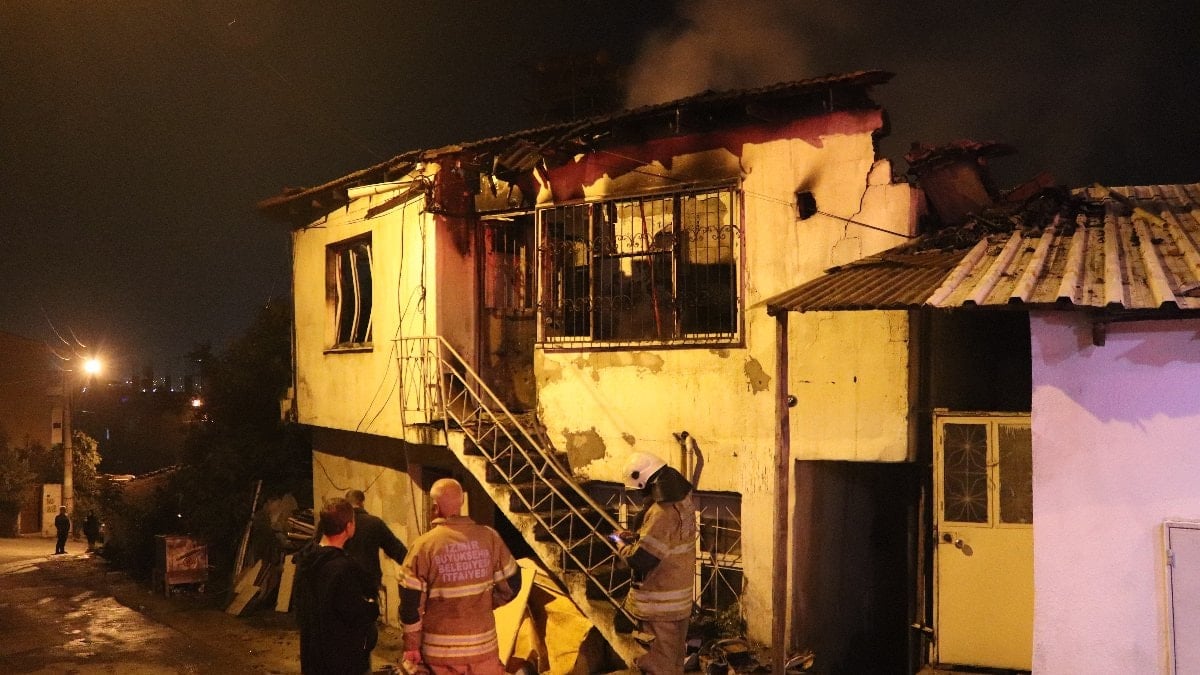 İzmir'in Bayraklı ilçesi Alpagut Mahallesi 1615 Sokak'ta bulunan iki katlı bir evde yangın meydana geldi.