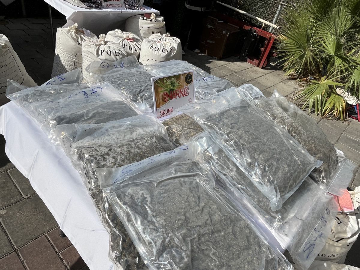 Adrese düzenlenen baskında 22 kilo 161 gram esrar-skank, 11 kök kenevir, 174 sentetik ecza, 1 tabanca ve 1 hassas terazi ele geçirildi.