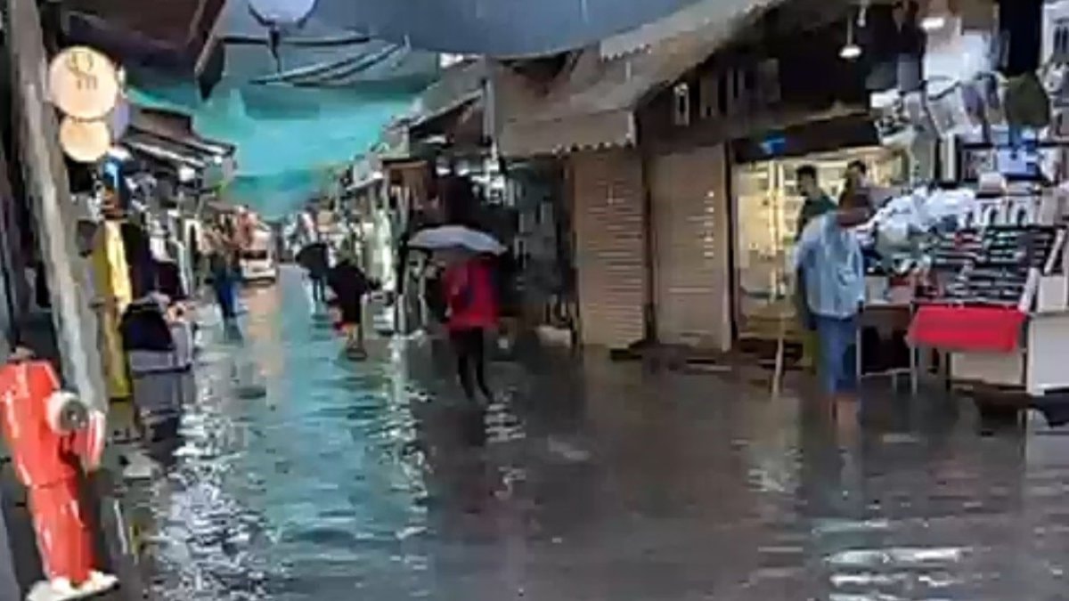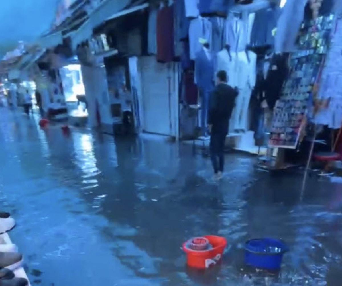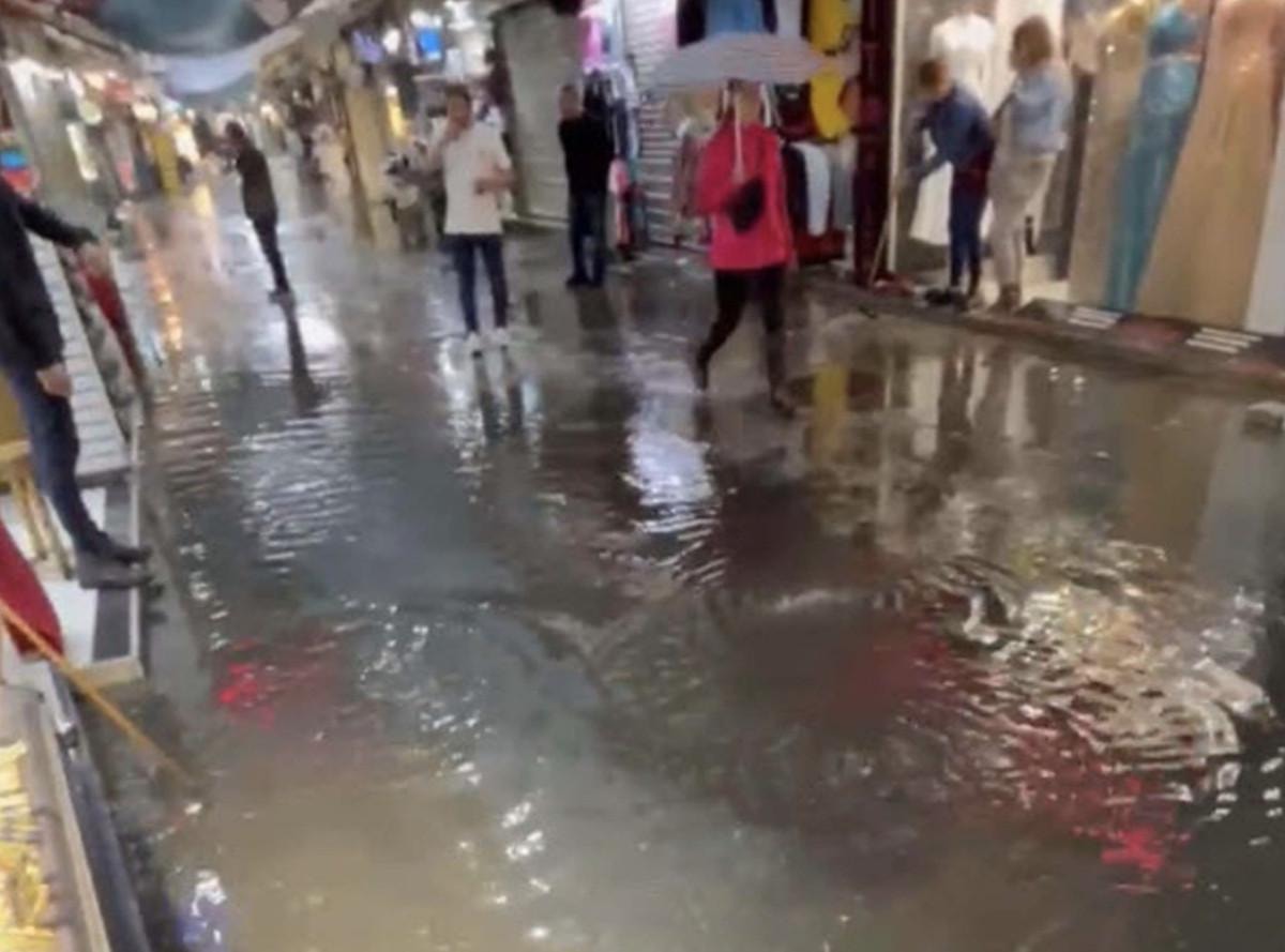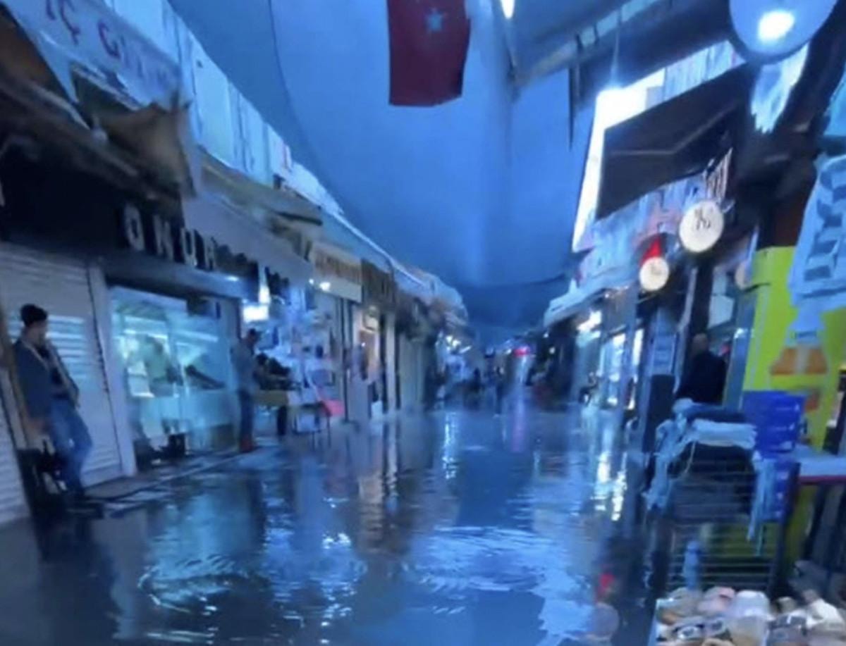 Turistik Kemeraltı Çarşısı’nda da yağış nedeniyle su birikintileri oluştu, esnaf ve vatandaşlar zor anlar yaşadı.