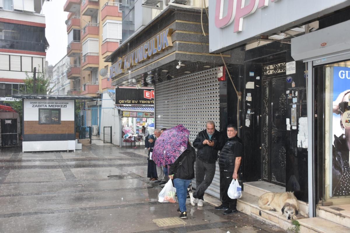 Yağmura hazırlıksız yakalanan vatandaşlardan bir kozmetik firmasında çalışan Murat Can Bulut, "İstanbul'dan yeni geldim. Orada da yağmur vardı ancak burada etkili oluyor. İzmir'de felaket bir yağmur var. Korunaklı bir alanda kalakaldık." dedi.