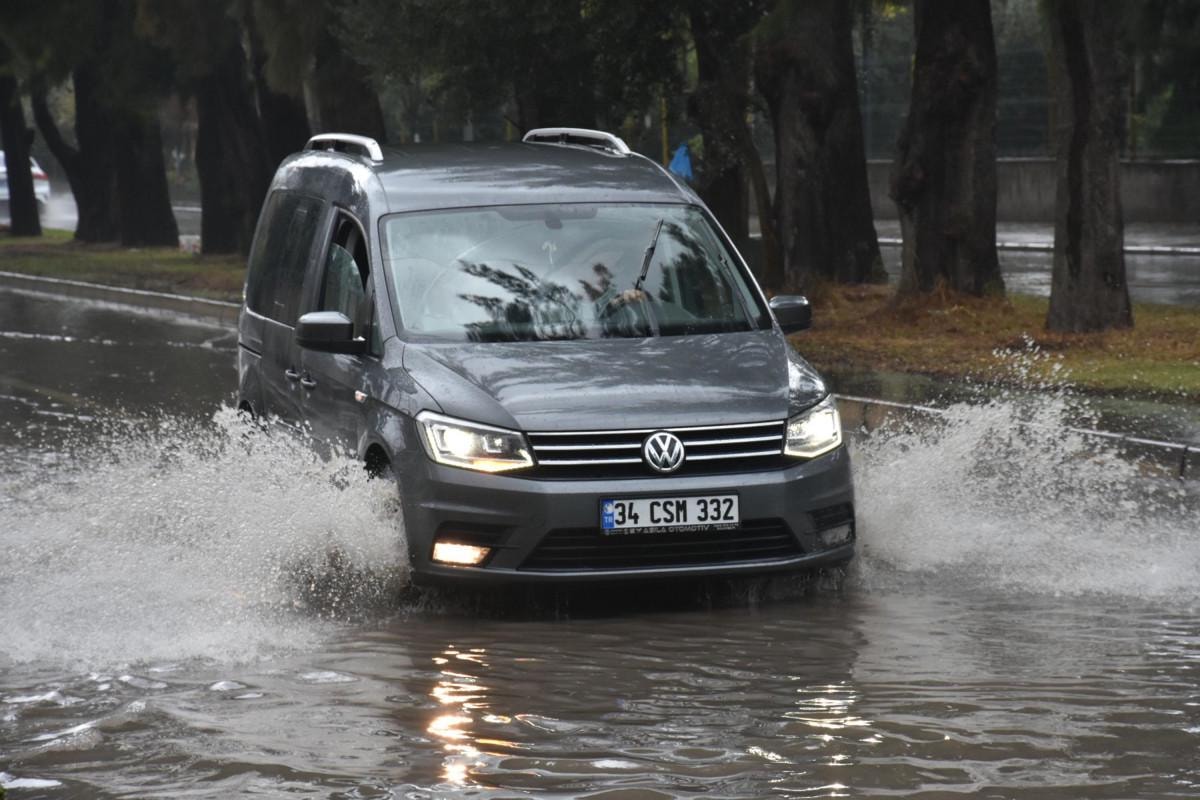 - İzmir'de etkili olan yağmur nedeniyle birçok bölgede su birikintileri oluştu.