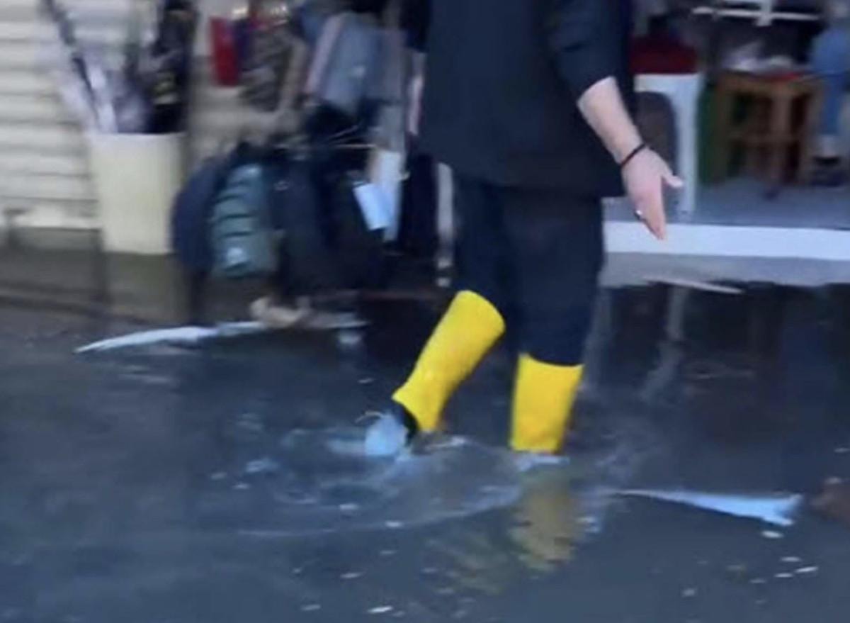 - Kemeraltı Çarşısı'nda su birikintileri esnaf ve vatandaşlara zor anlar yaşattı.