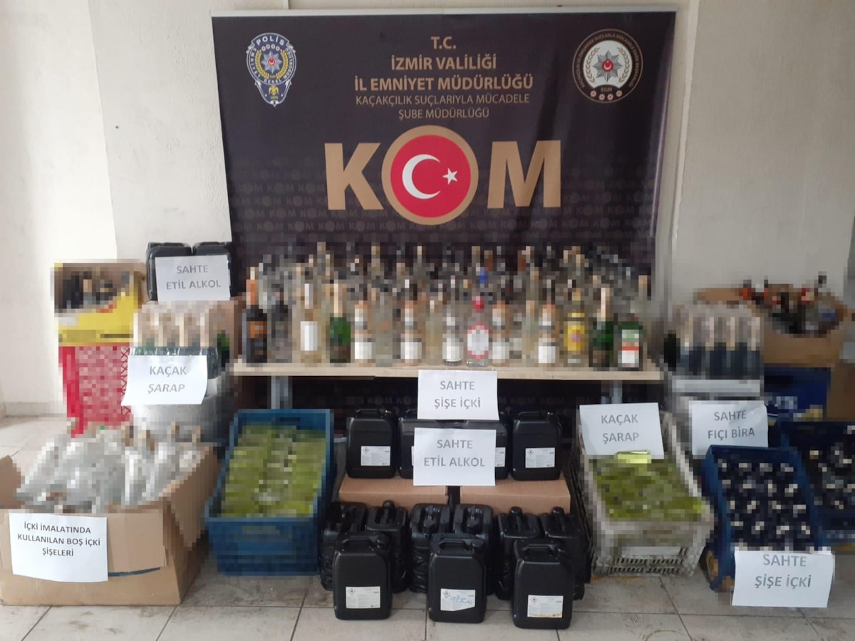 İzmir İl Emniyet Müdürlüğü Kaçakçılık Suçlarıyla Mücadele Şube Müdürlüğü ekipleri de, sahte içki imalatı yaparak hurdalardan ve eğlence mekanlarından aldıkları boş şişelere, ürettikleri sahte içkileri doldurarak eğlence mekanlarına temin ettikleri belirlenen şebekeyi takibe aldı.