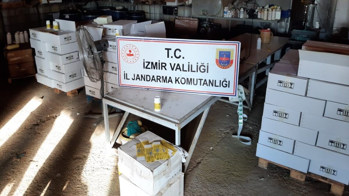 İzmir İl Jandarma Komutanlığı ekipleri, Torbalı ilçesi Çapak Mahallesi’nde bulunan bir üretim tesisinde çeşitli markaların taklitleri kullanılmak suretiyle sahte/izinsiz tarım ilacı üretimi yapıldığı bilgisi üzerine çalışma başlattı.