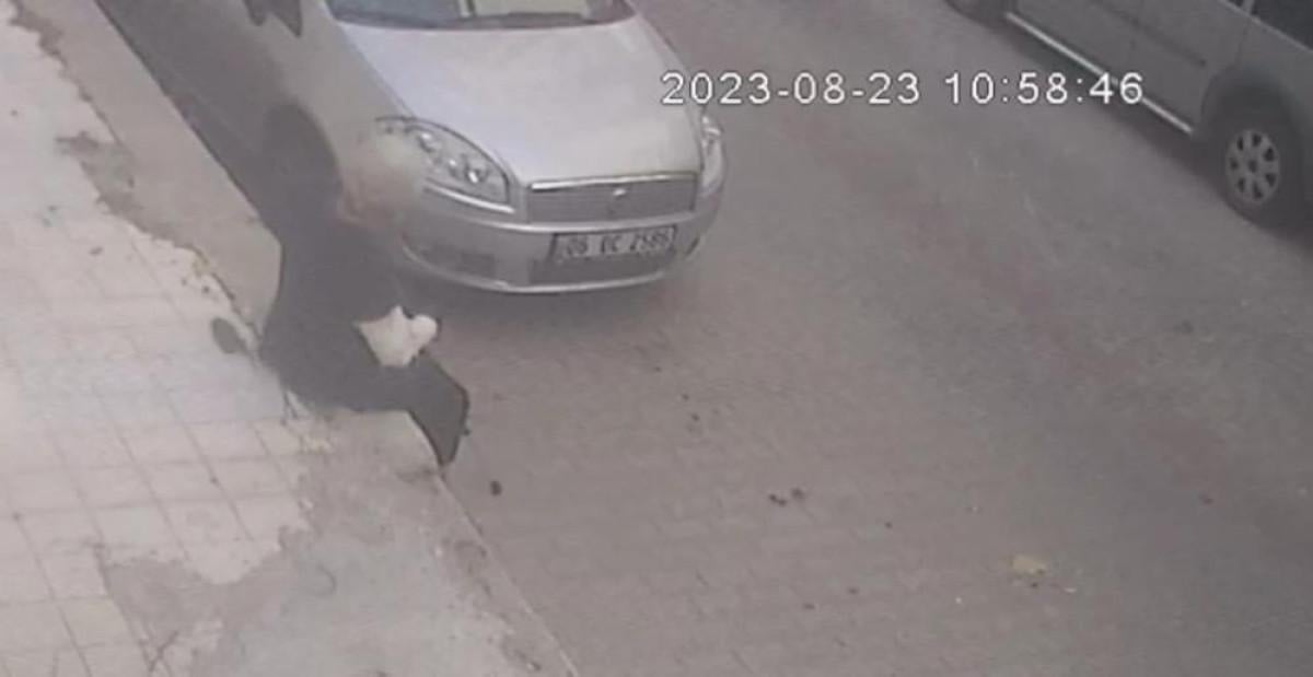 İzmir'de dün sabah saatlerinde Karşıyaka ilçesi Dedebaşı Mahallesi’nde kaldırımda oturmakta olan Cennet Sarı (75), arkasında gezinen ve kendisine temas eden hayvanı uzaklaştırmak için elini arkasına doğru götürdü.
