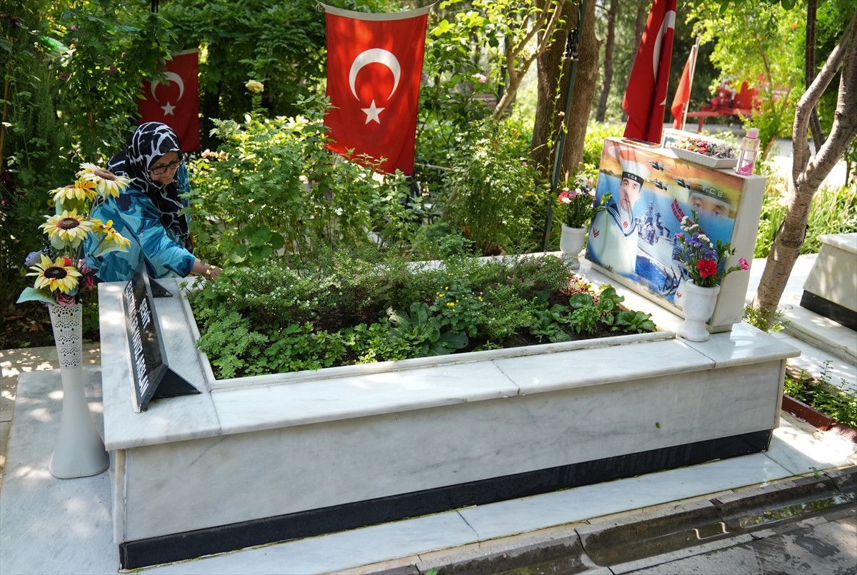 Şehit yakınları, bayram dolayısıyla Kadifekale Hava Şehitliği'ne gelen aileler, evlatlarının mezarları başında dua etti, Kur'an-ı Kerim okudu.