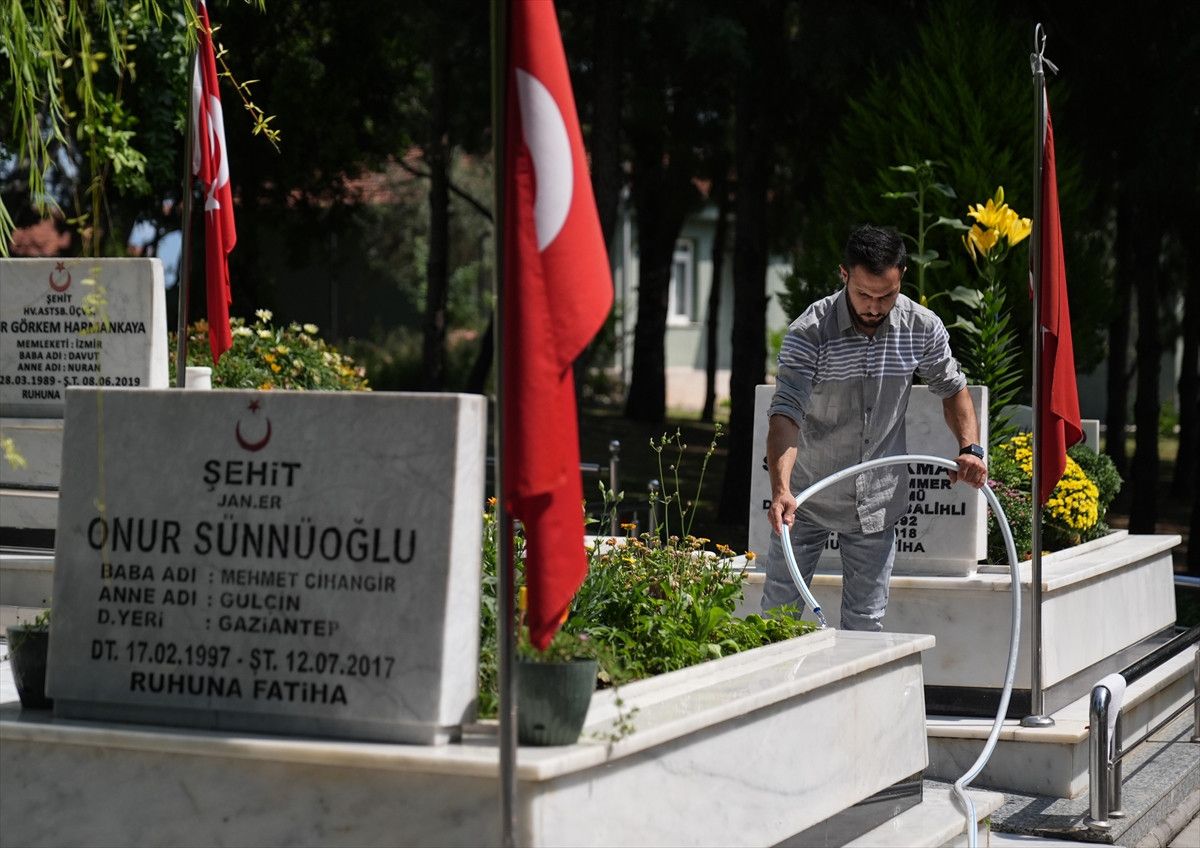Şehit aileleri, kabirleri temizleyip çiçek bıraktı.