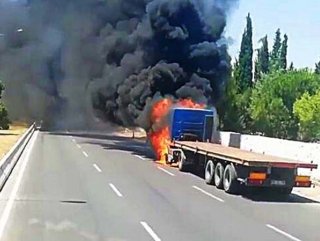 Yangının büyümesiyle tır adeta alev topuna döndü. Tırın yolun sağ şeritte yanması nedeniyle trafik de kontrollü olarak ilerledi. Kısa sürede bölgeye gelen itfaiye ekipleri, alev alev yanan tıra müdahale etti.