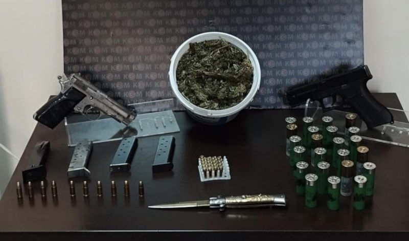 Operasyon kapsamında; 2 silah, 1 kurusıkı tabanca, 3 şarjör, 190 gram esrar maddesi, 23 kartuş, 21 tabanca fişeği ve 1 sustalı bıçak ele geçirildi.