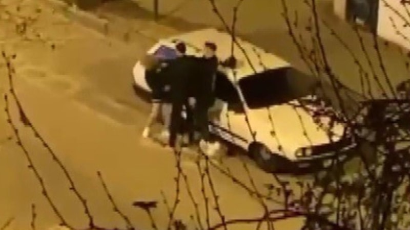 O anlar bir vatandaş tarafından cep telefonu kamerasıyla kaydedilirken şahsın darbettiği kız arkadaşının başında beklediği görüldü.