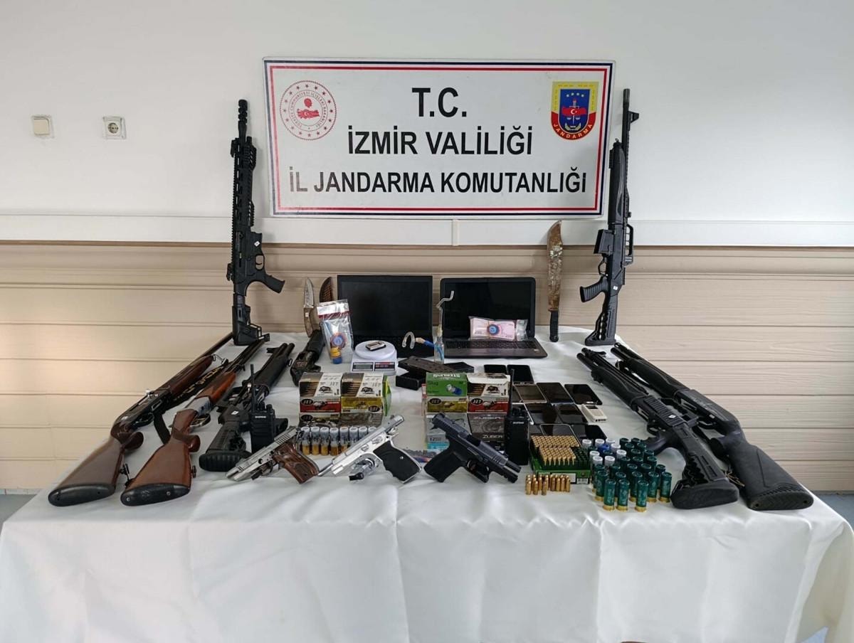 İzmir İl Jandarma Komutanlığı ekipleri, 21 Nisan'da şüphelilere yönelik eş zamanlı operasyon düzenledi.