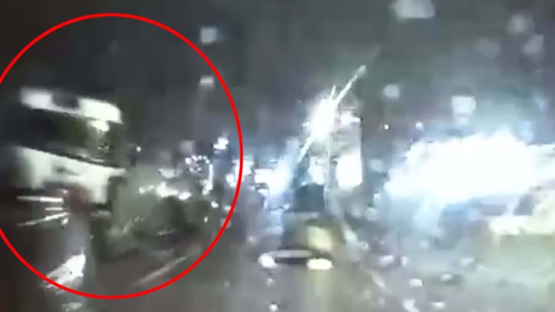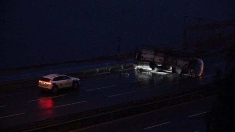İzmir'de mazot yüklü tankerin bariyere vurup karşı şeride geçerek taksiye çarptığı kazanın araç kamerası görüntüleri ortaya çıktı.