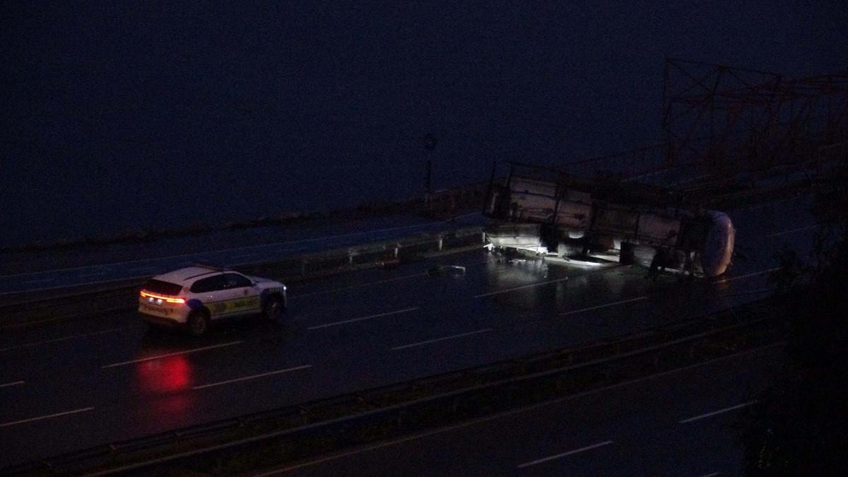 Dorsedeki yakıt tankı yola devrilirken taksideki yolcu yaralandı.