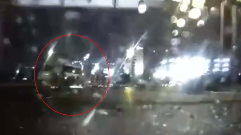 Görüntülerde taksi seyir halindeyken karşı yönden gelen tankerin çarptığı, çarpmanın etkisiyle de taksideki yolcu ve sürücünün savrulduğu anlar yer aldı.