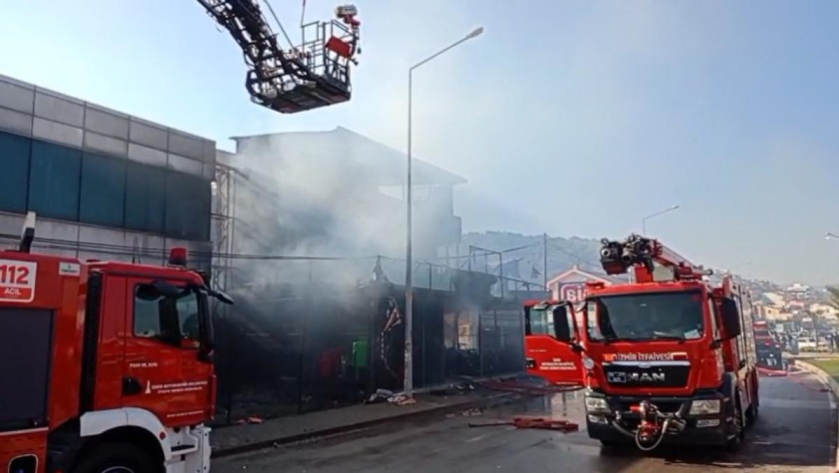 İzmir'in Dikili ilçesinde zirai ilaçlar ve tarım aletleri satışı yapan bir iş yerinin deposunda henüz belirlenemeyen bir nedenle yangın çıktı.