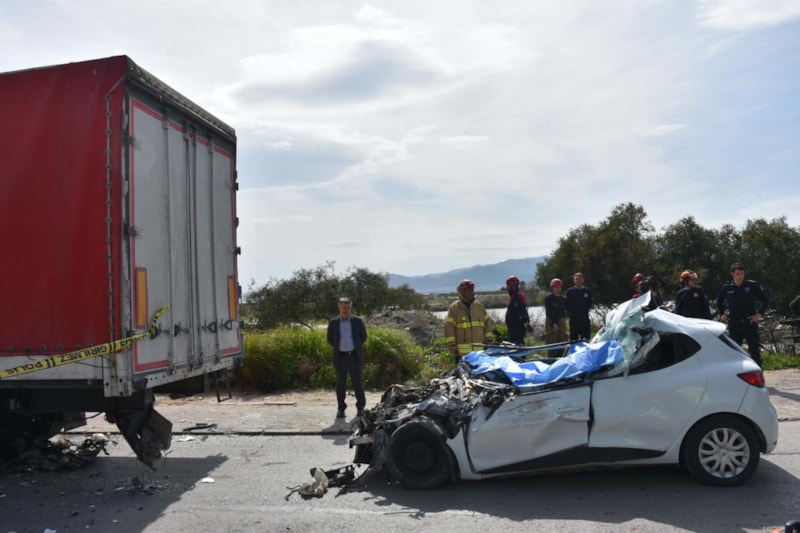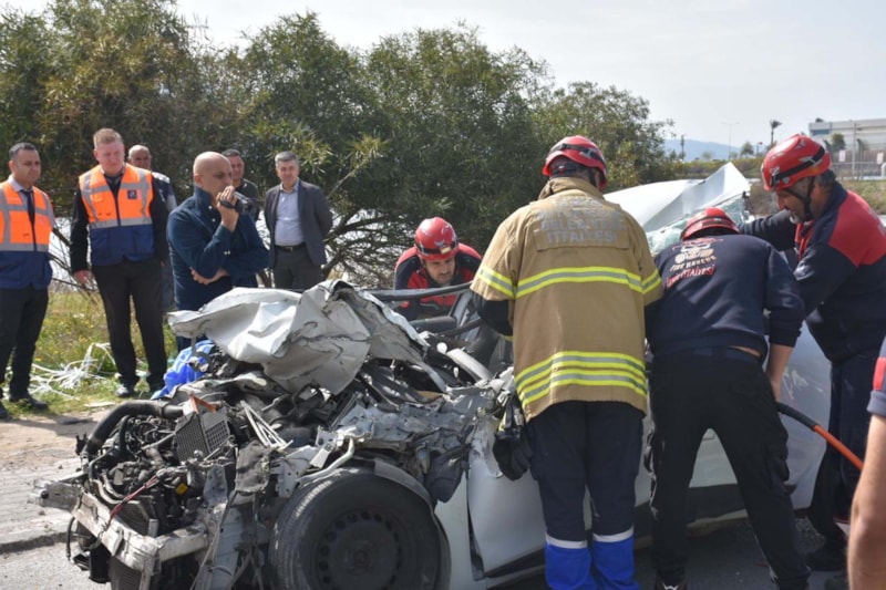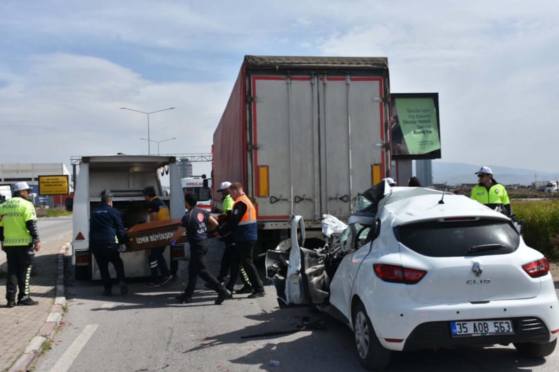 İzmir'in Çiğli ilçesi Atatürk OSB Mahallesi'nde Ahmet Kama idaresindeki plakalı otomobil, Ali Eren yönetimindeki tıra arkadan çarptı.
