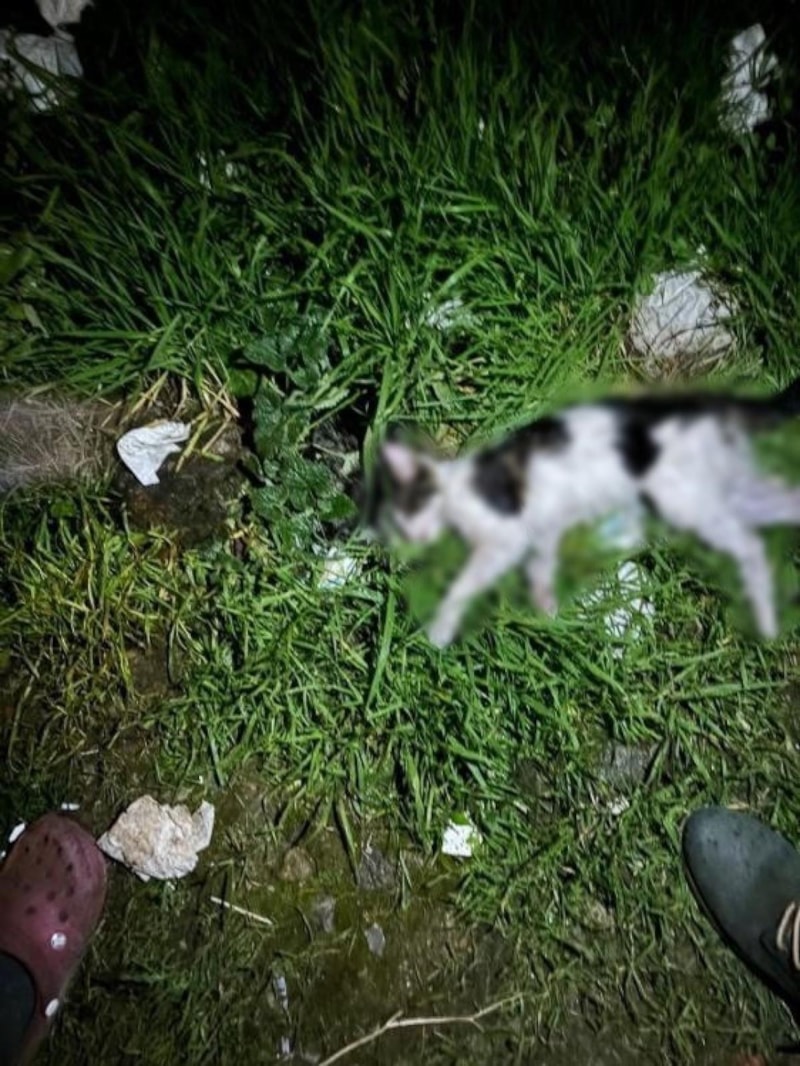 Apartmanın altında bulunan bahçede kedi cesetleriyle karşılaşan çevre sakinleri güvenlik kameralarını izleyince şoka uğradı.
