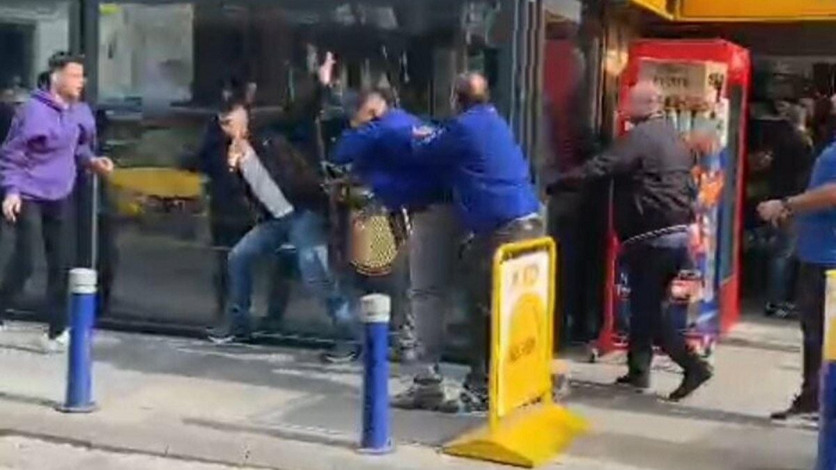 Öte yandan kavga anları, o esnada yoldan geçen bir sürücünün cep telefonu kamerasına yansıdı.