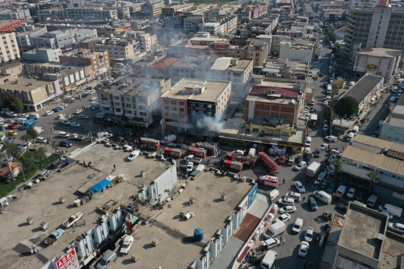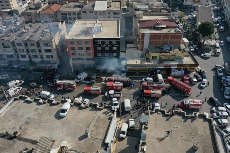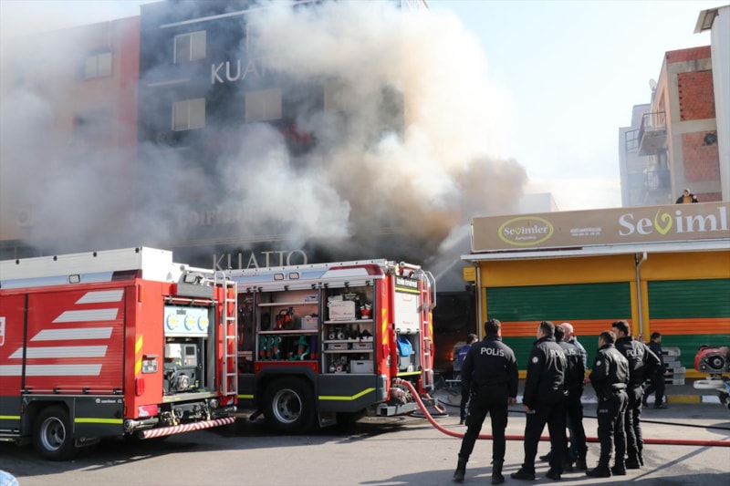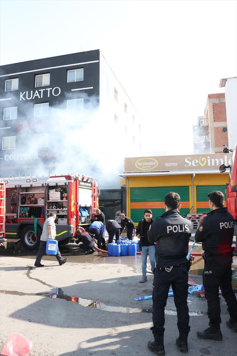 Alevlerin yükseldiği mağazadan patlama sesleri duyulurken, polis ekipleri çevrede geniş güvenlik önlemi aldı.