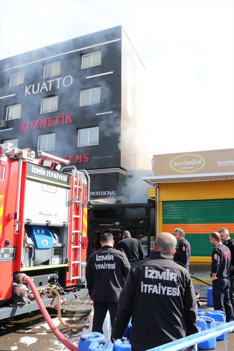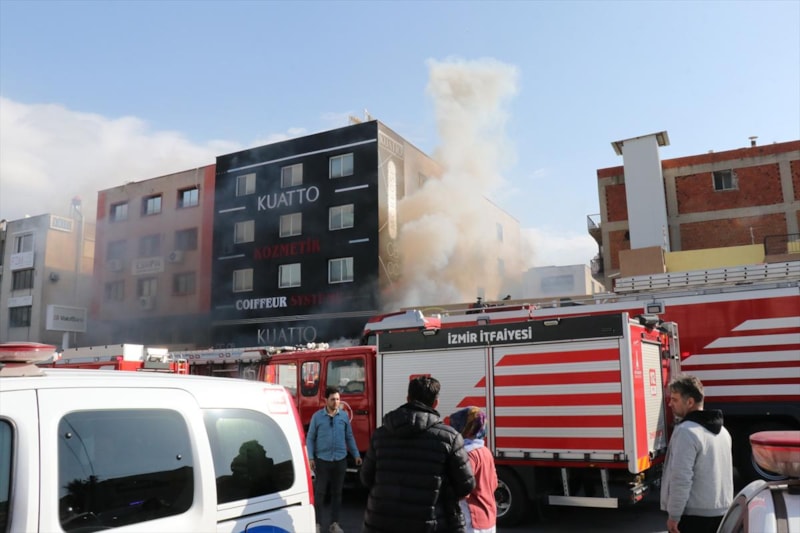 İzmir'in Konak ilçesine bağlı Yenişehir semtindeki Gıda Çarşısı 1203 Sokak'ta 5 katlı bir kozmetik mağazasında henüz belirlenemeyen bir nedenle yangın çıktı.