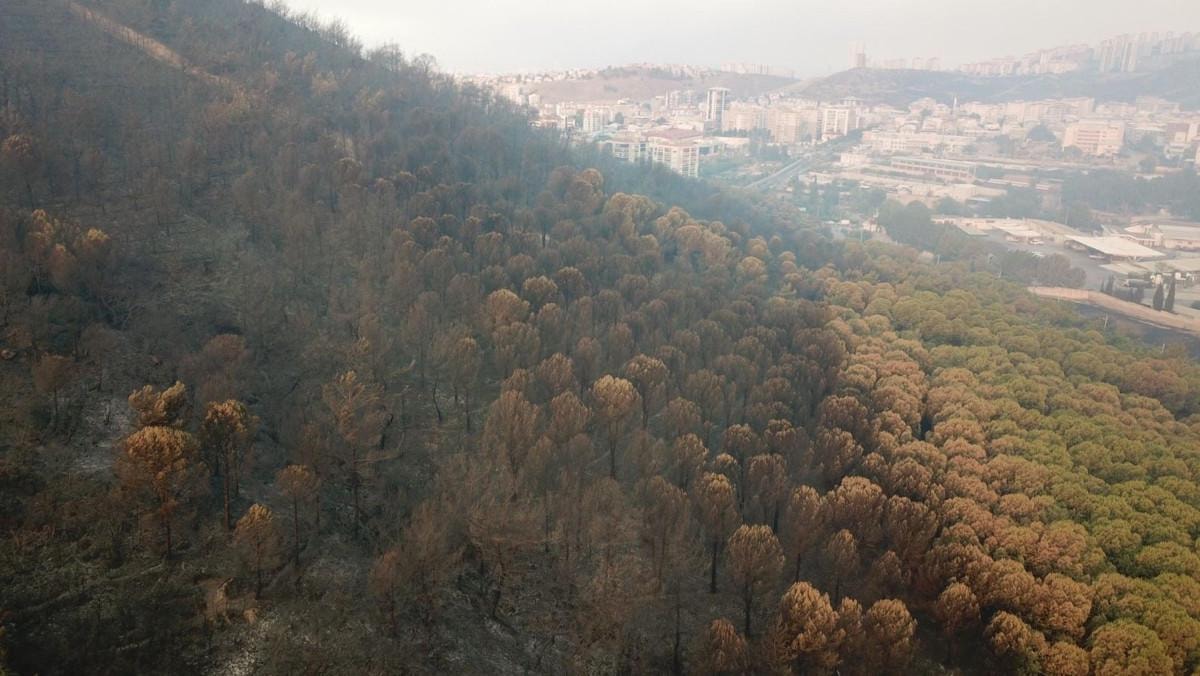 Yangının 3’üncü gününde bölgedeki acı tablo, gün ağarınca ortaya çıktı. Yanan alanlar, dronla havadan görüntülendi.