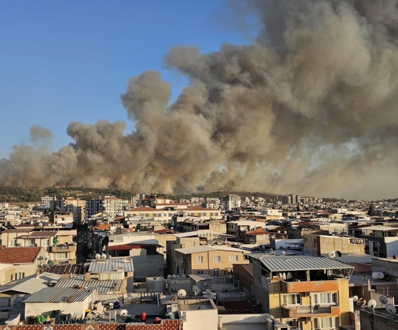 Rüzgarın da etkisiyle alevler kısa sürede büyürken, dumanlar kentin birçok noktasından görüldü.