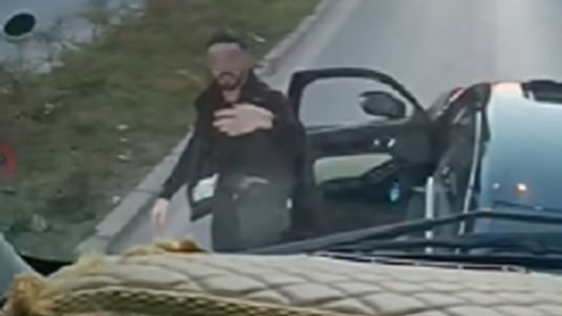 2 kişi daha sonra kamyonu yumruklamaya ve sürücüye küfretmeye başladı.