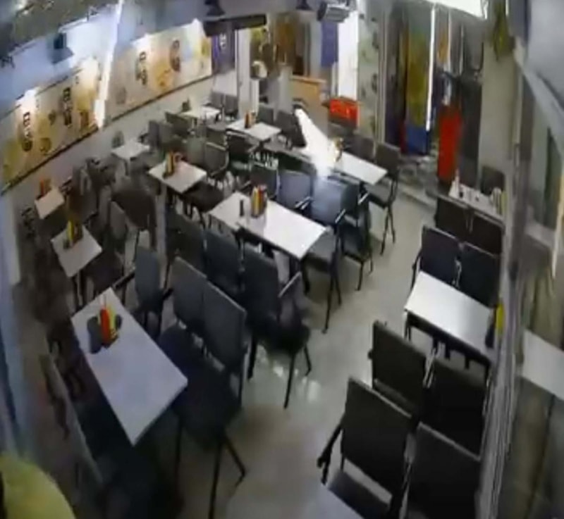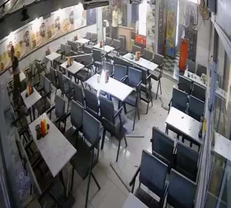 Öte yandan, patlamaya ait yeni görüntü ortaya çıktı. Bir iş yerinin güvenlik kamerasına yansıyan görüntülerde, patlamanın ardından tavandan düşen beton parçalarından başını korumaya çalışan bir kişinin panikle kaçıştığı görüldü.